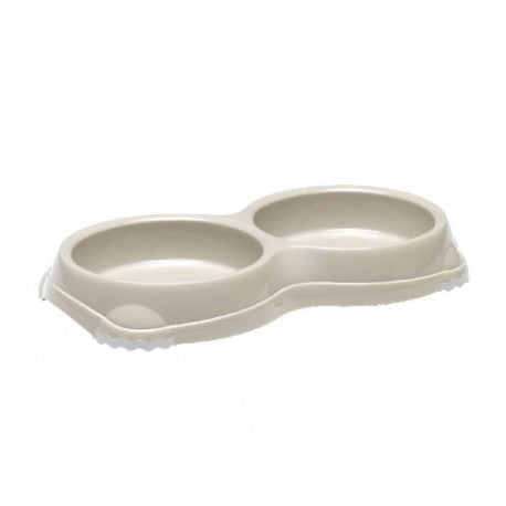 Comedero doble para gatos con base antideslizante. Capacidad 2 x 200 ml.